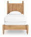Country rustic. Vintage inspired. However you see it, you’re sure to be charmed by this panel bed and its relaxed mix of picturesque aesthetics. A gracefully shaped rail brings dimension to the headboard, while decorative ball tops and turned legs adorn the silhouette in quaint fashion. A warm oak grain finish enhances the bed's air of easygoing elegance, letting you drift away to a simpler time and place.
