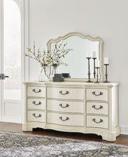 Arlendyne - 5 Pc. - Dresser, Mirror, King Upholstered Bed - Antique White