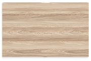 - Two-tone finish (dry, light finish over replicated oak grain; light chevron pattern)