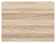 - Two-tone finish (dry, light finish over replicated oak grain; light chevron pattern)