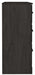 With its clean-lined look and modern attitude, this dresser is a fresh style awakening. Warm hue over replicated oak grain easily complements other furniture finishes. Smooth drawer fronts with antiqued pewter-tone handles complete the aesthetic.