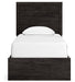 With its clean-lined look and modern attitude, this twin panel bed is a fresh style awakening. A warm hue over replicated oak grain easily complements other furniture finishes. The simple, unadorned profile is given depth and dimension with the addition of plank-style moulding on the headboard—proof that beauty lies in the details.