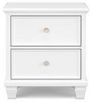 Exuding a timeless casual design, this nightstand is ready to define your personal space. It easily adapts to a variety of interiors, combining a clean, contemporary white finish with framed drawer fronts and round metal knobs. Featuring two storage drawers with dovetail construction and traditional tapered feet, this piece is sure to bring elegant simplicity to your bedroom.
