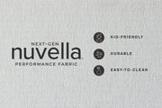 A divine merger of casual and contemporary design, this upholstered bed is the upgrade you've been dreaming of. Plush, deep pillowed tufting creates an impressive silhouette that's just as comfortable as it is stylish. And the textured light Next-Gen Nuvella performance fabric is soft and easy to clean. Now there's a bed with staying power.