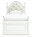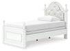Fit for a princess. This upholstered panel bed’s crisp matte white finish pairs with charming ornate beading and sumptuous button-tufted upholstery—perfect for your girly girl. Decorative ball tops and multicolored LED lighting in the headboard are the crowning touches to make your little one feel like royalty.