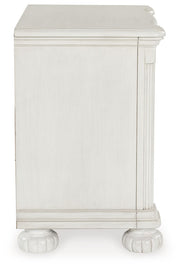Transform your inner sanctum into a haven of timeless elegance and functionality. This traditionally styled nightstand is adorned in a classic antiqued white finish, highlighted by a serpentine-shaped front with thick decorative moulding. Its drawers are packed with ample storage possibilities, and a hidden pull-out tray behind the bottom drawer puts your small valuables out of sight. And did we mention the stylish reeded bun feet? Talk about relaxed refinement.