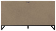 Streamlined design and a stunning two-tone finish come together in one simply extraordinary piece. This dresser is sure to impress with six smooth-operating drawers, canted metal legs and rich brown finish over replicated pine grain texture. Its mid-century style is a nod to the past, while the updated finish keeps it solidly in the present.
