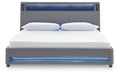 Snooze in style with this upholstered bed. It brings delightful function to winding down before bedtime, with an adjustable LED reading light on each side. And for added flair, multicolored ambient lighting brings an ultra-cool vibe to the overall look. Combining modern convenience with captivating design, this bed revamps your restful retreat like never before.