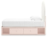 Wistenpine - Full Upholstered Panel Bed With Side Storage - Blush