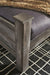 Rustic planked replicated oak grain with authentic touch. Large scaled dark colored hooded pull. Sticks across headboard give a thick planked look. Side roller glides for smooth operating drawers. Cases feature a framed front and pilasters. Large drawers provide ample storage space. Slim profile dual USB charger located on the back of the night stand tops. Queen (67) and king (68) poster headboards feature an upholstered panel with horizontal channel details.