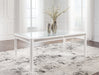 Embracing modern glamour, this extension table is a sparkling addition to your dining area. A bright white lacquer finish, shimmering rhinestone accents and clear glass panels give this table plenty of polish. Plus the drop-in leaf accommodates parties of ten with ease.