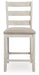 This upholstered bar stool invites you to raise the bar on small space living. An inspired choice for coastal chic or modern farmhouse settings, this comfortably cushioned bar stool with classic ladderback styling sports a grayish white finish with rub through effect for timeworn appeal.