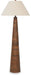 Clean, contemporary style can be sleek and shiny—or subtle and earthy. We love how this lamp falls into the latter category. Pairing a stylish shade with a wood base bathed in a honey brown finish, it has a delightfully different yet simply illuminating look. It's the perfect accent when staged in the living area or TV room.