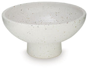 This eye-catching bowl, with its delicate black speckles, is the perfect statement piece to elevate your tablescape. Crafted from glazed terra cotta, it’s a magnificent vessel to store fresh fruit or to serve your favorite side dishes. And what a great spot for keys, earbuds and so much more. This bowl stands beautifully on its own, or as part of a splendidly stylish trio with the coordinating vases (sold separately).