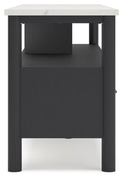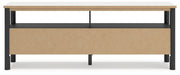 Imagine a TV stand that adds sophisticated and minimal boho style to your home with a stylish storage solution. This stand does just that. Its sleek design and replicated marble top create an upscale ambiance that's perfect for displaying your television and organizing your space.