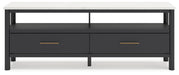Imagine a TV stand that adds sophisticated and minimal boho style to your home with a stylish storage solution. This stand does just that. Its sleek design and replicated marble top create an upscale ambiance that's perfect for displaying your television and organizing your space.