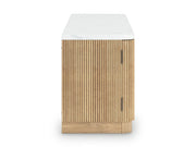 Elegance meets earthy charm in this TV stand. Crafting a contemporary living room? The faux marble top expertly pairs with the reeded base for a trend-right take on day-to-day function. Open shelving and subtly integrated storage cabinets make it easy to store and display media accessories in style.