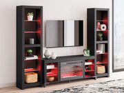 Level up your gaming experience and make movie nights to remember. This entertainment center with fireplace extends your entertainment beyond the screen. Its built-in fireplace brings the heat, synchronizing with LED backlighting on the assorted shelves. And you can customize the vibe with trendy color options: red, green, blue and magenta. Modern function. Captivating, cool style. With this entertainment center, revamp your home’s recreational hub like never before.