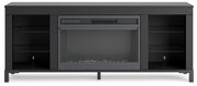 Level up your gaming experience and make movie nights to remember. This TV stand with electric fireplace extends your entertainment beyond the screen. Its built-in fireplace brings the heat, synchronizing with LED backlighting on the shelves. And you can customize the vibe with trendy color options: red, green, blue and magenta. Modern function. Captivating, cool style. With this TV stand, revamp your home’s recreational hub like never before.