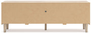 Clean-lined and contemporary—but far from stark—this TV stand is a fresh style awakening. Pairing a light finish with replicated oak grain and textured beige cane details, its mixed materials bring a naturally versatile vibe to your favorite spot for binge-watching or gaming. Sleek, simple hardware plays perfectly with the modern aesthetic. And prepare to have your mind blown by the vast universe of storage possibilities within the spacious drawers and open shelving.