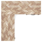 - Two-tone finish (dry, light finish over replicated oak grain; light chevron pattern)