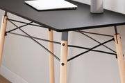 A contemporary take on a classic look, this home office desk adds a touch of artistic flair to your at-home work experience. It's designed with small space living in mind, and is perfect for small apartments and dorms. With its painted top, metal framework and wood legs, this rectangular desk is intricately eye-catching, allowing you to work in style.