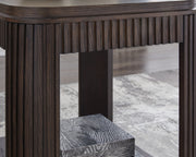 Cool, contemporary flair. Unbeatable function. This table brings sleek style to everyday living. Fluted details on the apron and posts lend a trendy vibe. For a personal touch, dress up the lower shelf with your favorite decor.