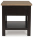 When you’re styling your living room, convenience is key. With this end table, casual flair meets can’t-miss function. Tired of tracking down lost remotes? A handy storage drawer keeps your entertainment essentials close. This fashionably functional piece pairs a dark chocolate brown with a light wood tone, complementing a variety of color palettes.
