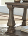 Homey. Hearty. Heavenly hued. Luring with a distressed weathered gray finish and square baluster legs set on a broad lower shelf for great presence, the Johnelle end table is sure to make your homestead feel that much more like home. The look is beautified with elm veneers and a framed and plank-effect tabletop for a richly crafted masterpiece made for years of satisfaction.