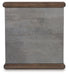 Master the art of mixed-material design with this end table. Sporting an urban vibe, its faux cement lends an industrial edge to the contrasting dark brown finish. For a functional touch, a lower shelf showcases your decor in style. Detailed mouldings on the sides add that much more cool character.