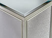 Reminiscent of Hollywood glamour of yesteryear, this set of nesting end tables interprets luxury in a decidedly modern way. A dazzling metallic silvertone finish and textured laminate panels for added luster enhance the star power, while the beveled inset mirrored tabletop brings that touch of glam you've been yearning for.