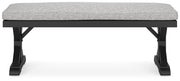 Beachcroft - 6 Pc. - Outdoor Dining Table, 2 Side Chairs, 2 Arm Chairs, Bench - Black / Light Gray
