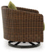 This outdoor set recalls the aesthetics of nature to bring an inviting, high-style feel to your patio or lanai. Its Nuvella+™ performance fabric is made with enhanced UV resistance, so the chic green hue stays brighter for longer. Worried about the weather? Don't sweat it—the durable resin wicker withstands the elements from season to season.