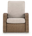 Who says the great outdoors isn’t made for luxury living? This outdoor recliner offers all of the high-end design, plush comfort and durability you could ask for, and then some. Its all-weather aluminum frame and resin wicker provide the easy-breezy look you love without the high maintenance. And rest assured—the high-performing Nuvella® fabric is made to stand up to the elements.