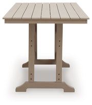 This outdoor counter height dining table is the perfect companion for alfresco living. Its contemporary, neutral design creates an effortlessly chic focal point for any deck or patio. Built with a smart slatted construction, it sheds rainwater while delivering exceptional durability that stands up to the elements year after year.