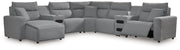 ModMax II - 7-Piece Power Reclining Sectional With LAF Power Chaise And With Audio Console - Salt And Pepper