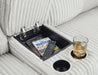 - Includes 3 pieces: left-arm facing recliner, console with storage and right-arm facing press-back chaise