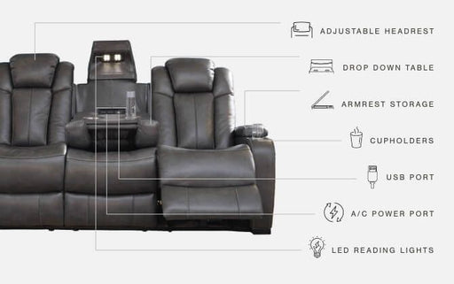 Afficher tous les détailsDraycoll - Reclining Power Sofa - Fabric - Slate