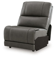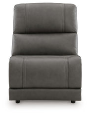 This armless chair is made with a combination of 100% top grain leather and faux leather upholstery. It pairs with other items in the series to make a modular sectional.