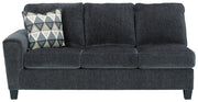 This left-arm facing sofa with corner wedge is made with polyester upholstery. Pairs with other items in the series to make a sectional.