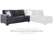 This left-arm facing full sofa sleeper is made with polyester upholstery. Pairs with other items in the series to make a sectional.