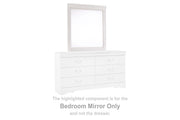 This bedroom mirror is made with engineered wood. Pairs with other items in the series to make a dresser and mirror kit.