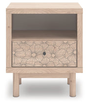Looking for a nightstand that's both playful and practical for your little one? This piece is just the ticket. Its charming design and light wood finish create a whimsical and inviting atmosphere. A floral-patterned drawer adds a free-spirited vibe and plenty of bedside storage, so there's no excuse for a messy room. And a USB charger located on the back makes this nightstand that much more functional.