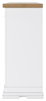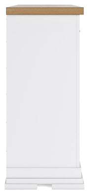 Casual style with substance. This two-tone dresser raises the bar on comfortably cozy design in your soothing sanctuary. A sturdy silhouette with a classic white finish and black metal hardware exudes modern farmhouse vibes. The butcher block oak veneer top adds a relaxed aesthetic. And this charmingly curated piece is spacious enough for all your essentials.