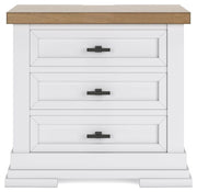 Ashbryn - Three Drawer Night Stand - White / Natural