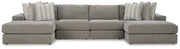 Avaliyah - 5 Pc. - 4-Piece Double Chaise Sectional, Ottoman - Ash