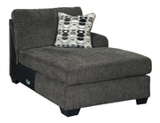 This right-arm facing corner chaise is made with polyester upholstery. Pairs with other items in the series to make a sectional.
