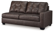 This right-arm facing sofa is made with faux leather upholstery. Pairs with other items in the series to make a sectional.