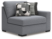 This right-arm facing corner chair is made with Next-Gen Nuvella™ (polyester) fade-resistant, washable fabric. Fully finished on all sides, it pairs with other items in the series to make a modular sectional.
