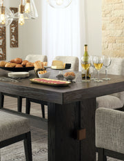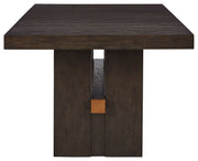 Dressed to thrill, this simply stunning dining table offers a high-design look at a down-to-earth price. Ultra sleek lines are accentuated with a dark waxy brown oak-tone finish that’s so easy on the eyes. Clean-lined and modern, the double pedestal base and thick edge tabletop showcase quality craftsmanship and attention to detail. Whether you're hosting family meals or holiday entertaining, it has a timeless look that’s made to last.